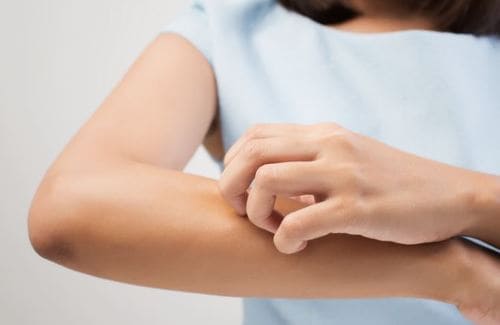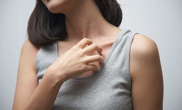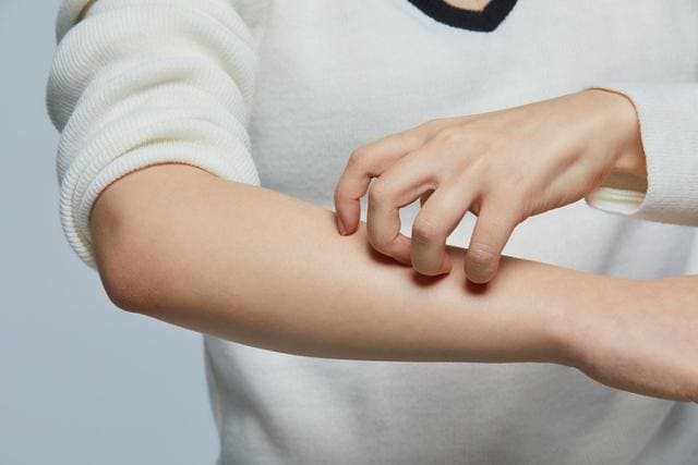 피부의 가려움증과 함께 대표적인 증상으로 피부에 발진이 나타나게 됩니다. 발진은 붉게 여러 불특정 부위에 발생하고, 건조하거나 습기가 적은 지역에서 더 심해질 수 있습니다.